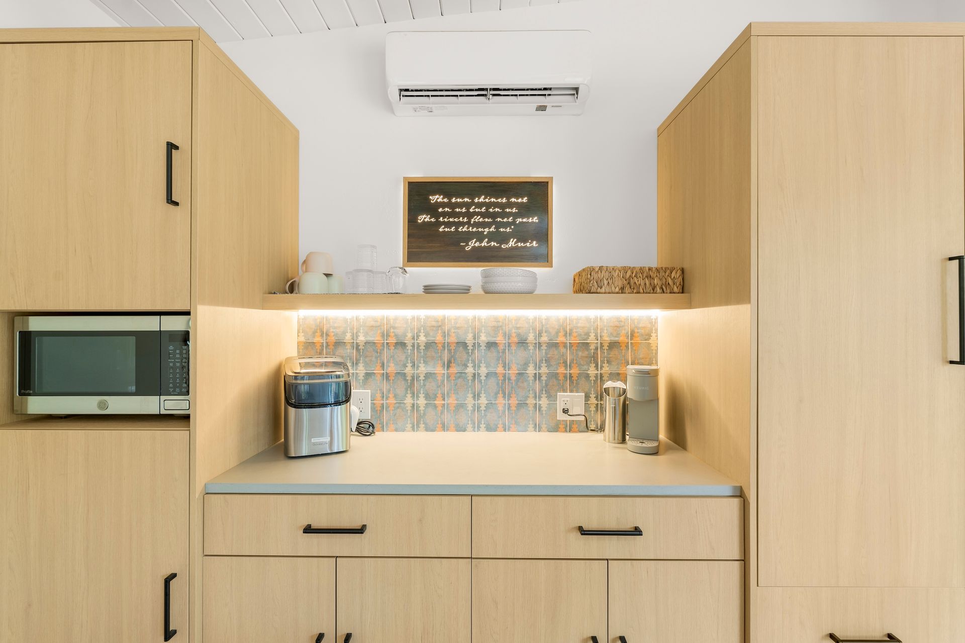 Considered “the Father” of National Parks, John Muir is honored and remembered in our gorgeous Creekside property with this beautiful and spacious luxury one bedroom cabin with living room, dining table and mini-kitchen.